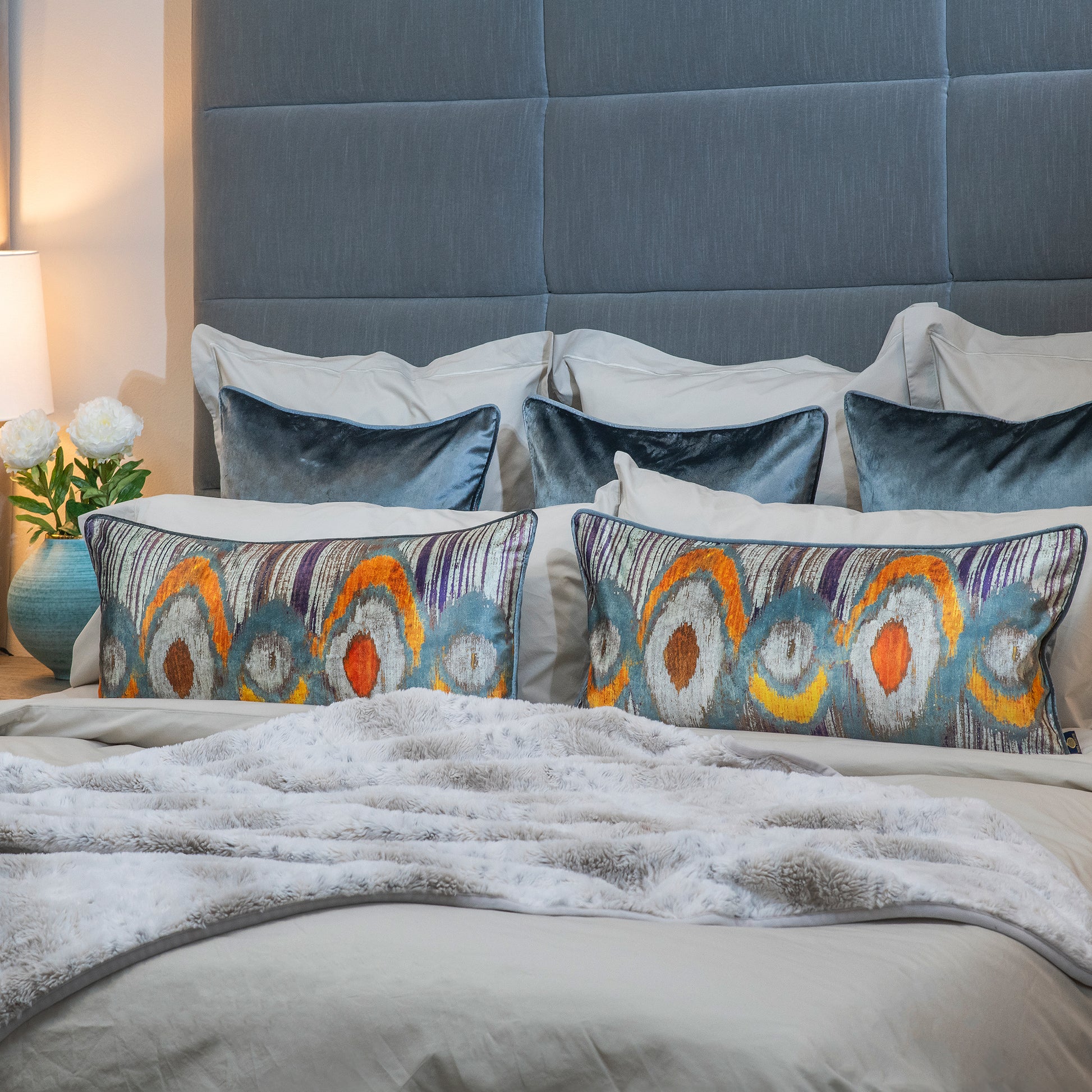 Cool colors often imbue a sense of tranquility in the living room. However, without warmer accents, the space may feel lacking in vitality and energy. Warm Affections is crafted to infuse this much-needed touch of warmth into your seating area. The combination of orange and mustard hues, complemented by purple-blue tones, creates an inviting pattern that adds vibrancy to the space. The soft velvet fabric of the pillow cover enhances the cozy ambiance and offers additional comfort. Additionally, the authentic talisman illustrations on the cover evoke traditional and cultural familiarity.